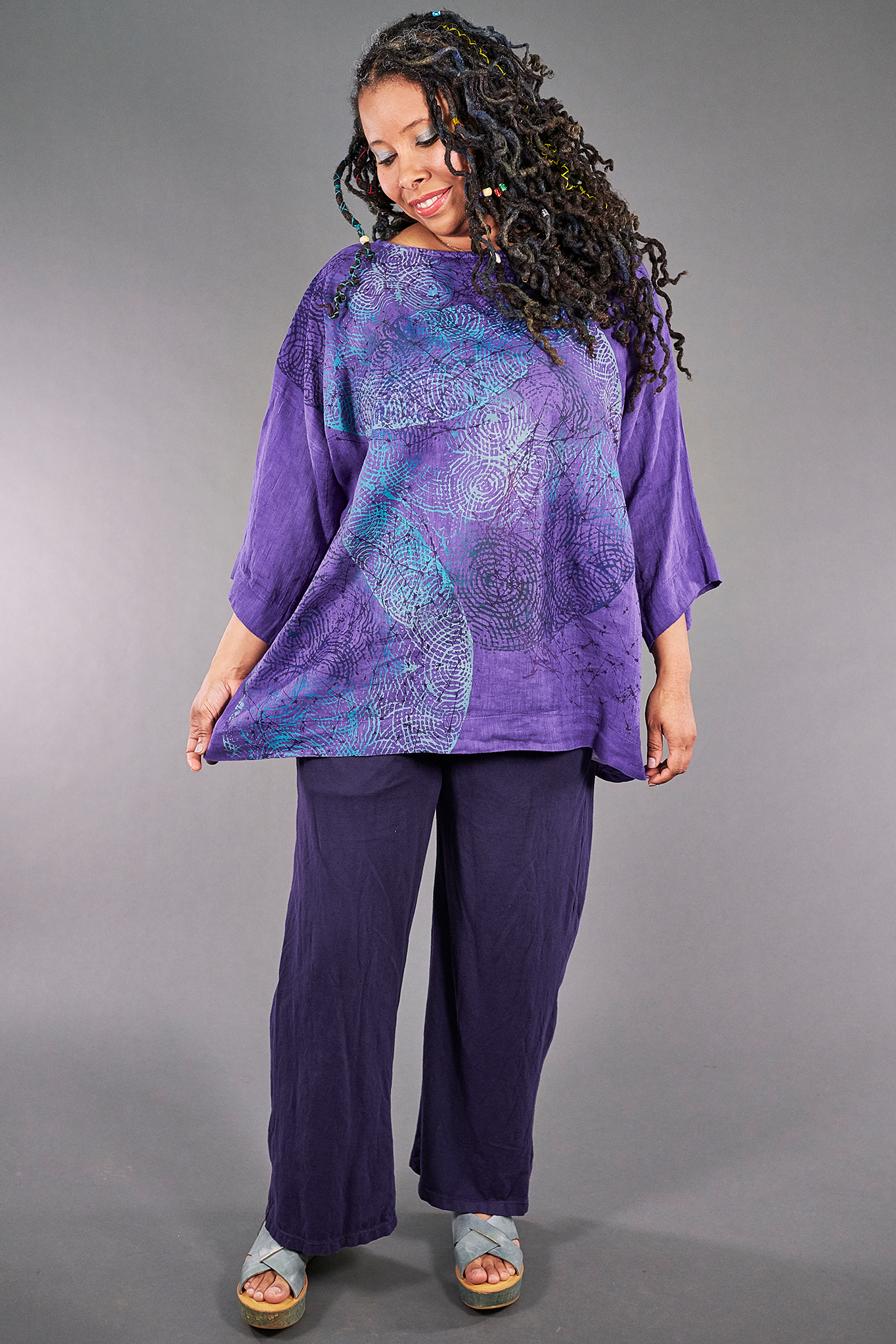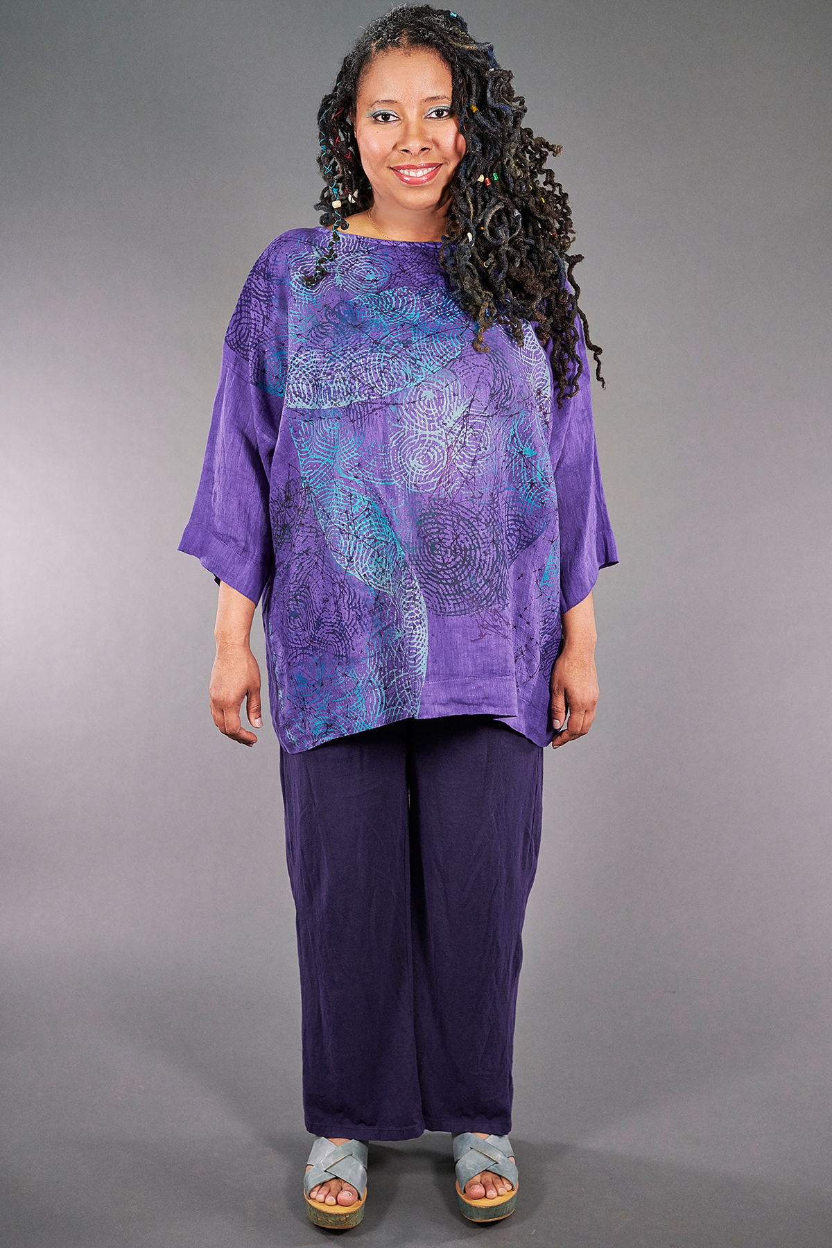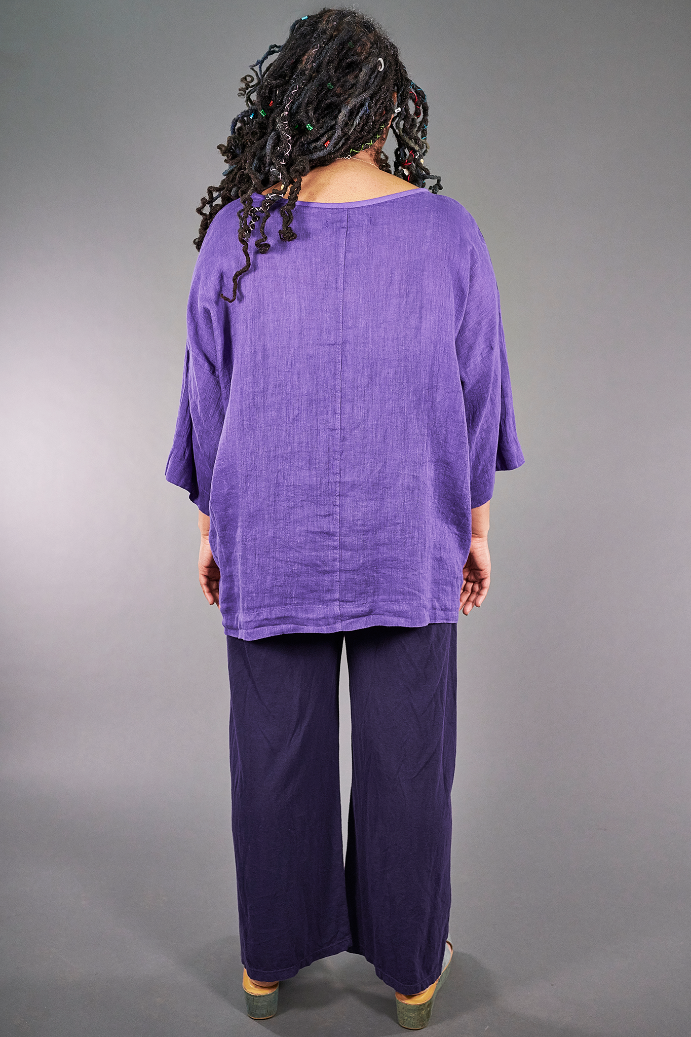 L594 Oversized Square Linen Top-Violet-P