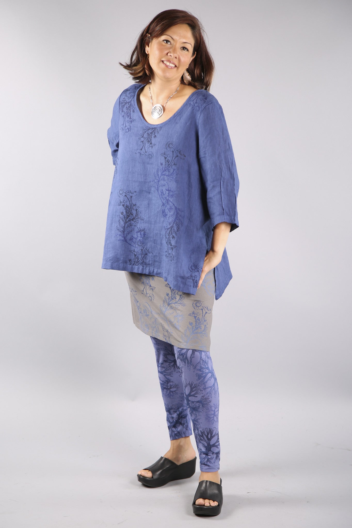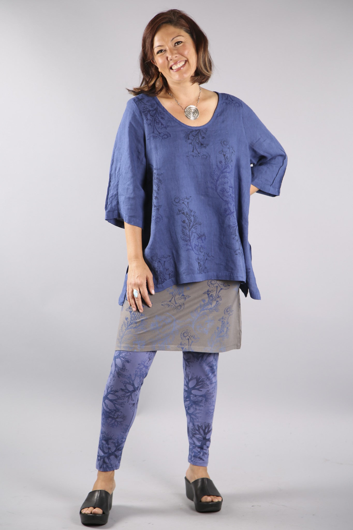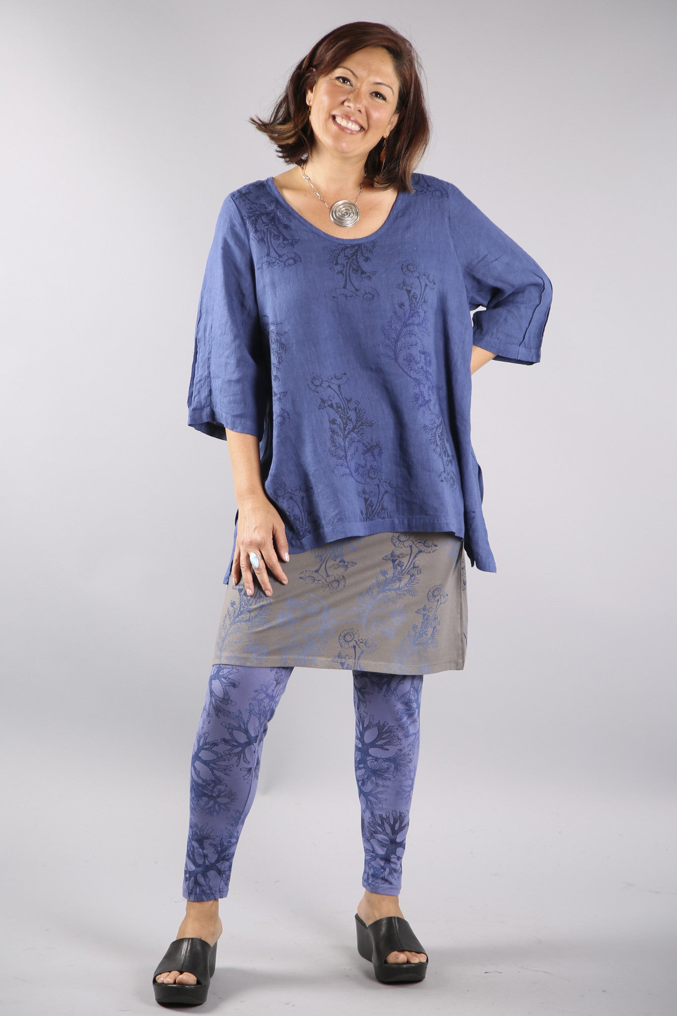 A playful short-layer skirt that is meant to be worn over wide pants or leggings for the purpose of adding an extra layer of color/tone and print to any outfit. sort of 'joins' the top and the bottom as a fusion piece.