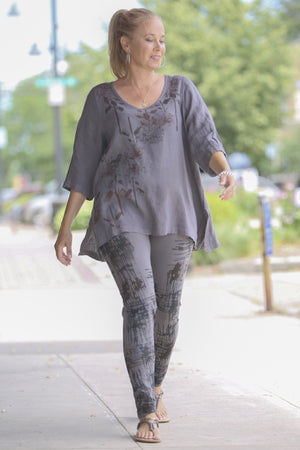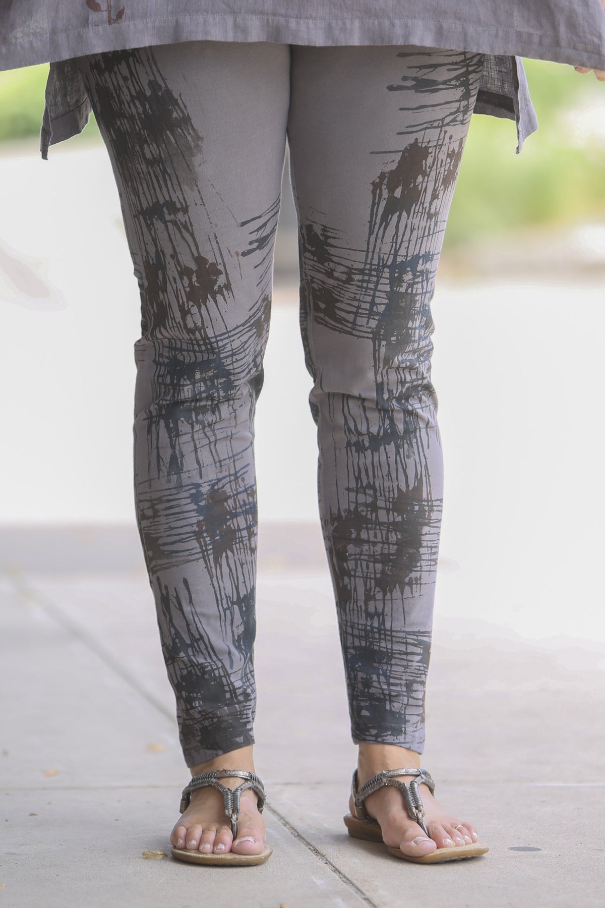 Made entirely in the USA from knit of fabric, through design and sewing. hand printed with love in our studio one at a time. Hand printing leggings takes a long time!