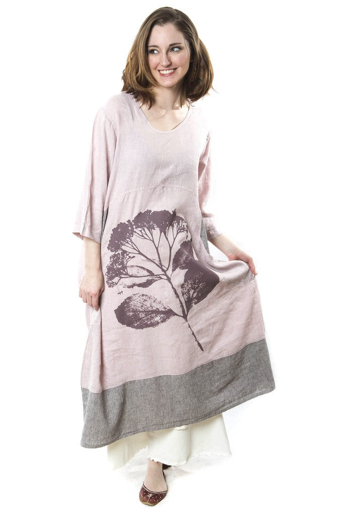 This beautiful loosely-fitting linen dress will be your new go-to piece for comfortable elegance on hot days. The striped trim at the pockets and bottom hem adds a contrast, setting off the lovely soft colors. This is a dress you can live in all-summer long!