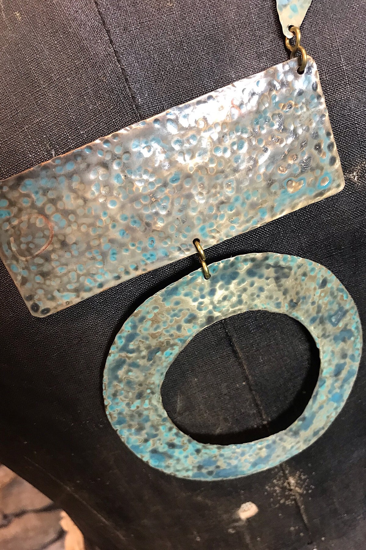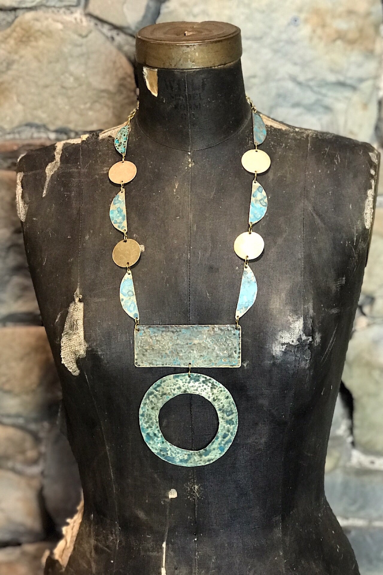Hand forged and patinated brass necklace. Hand made in Iowa
