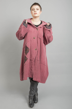 This classic Blue Fish fleece hoodie coat is our go-to for warmth & style. Fun circular patches at the elbow add interest, while the waved button closure adds a unique place for 3 buttons. The a-line tiers are very flattering, and allow for lots of layers underneath.Two pockets on the sides complete the design.