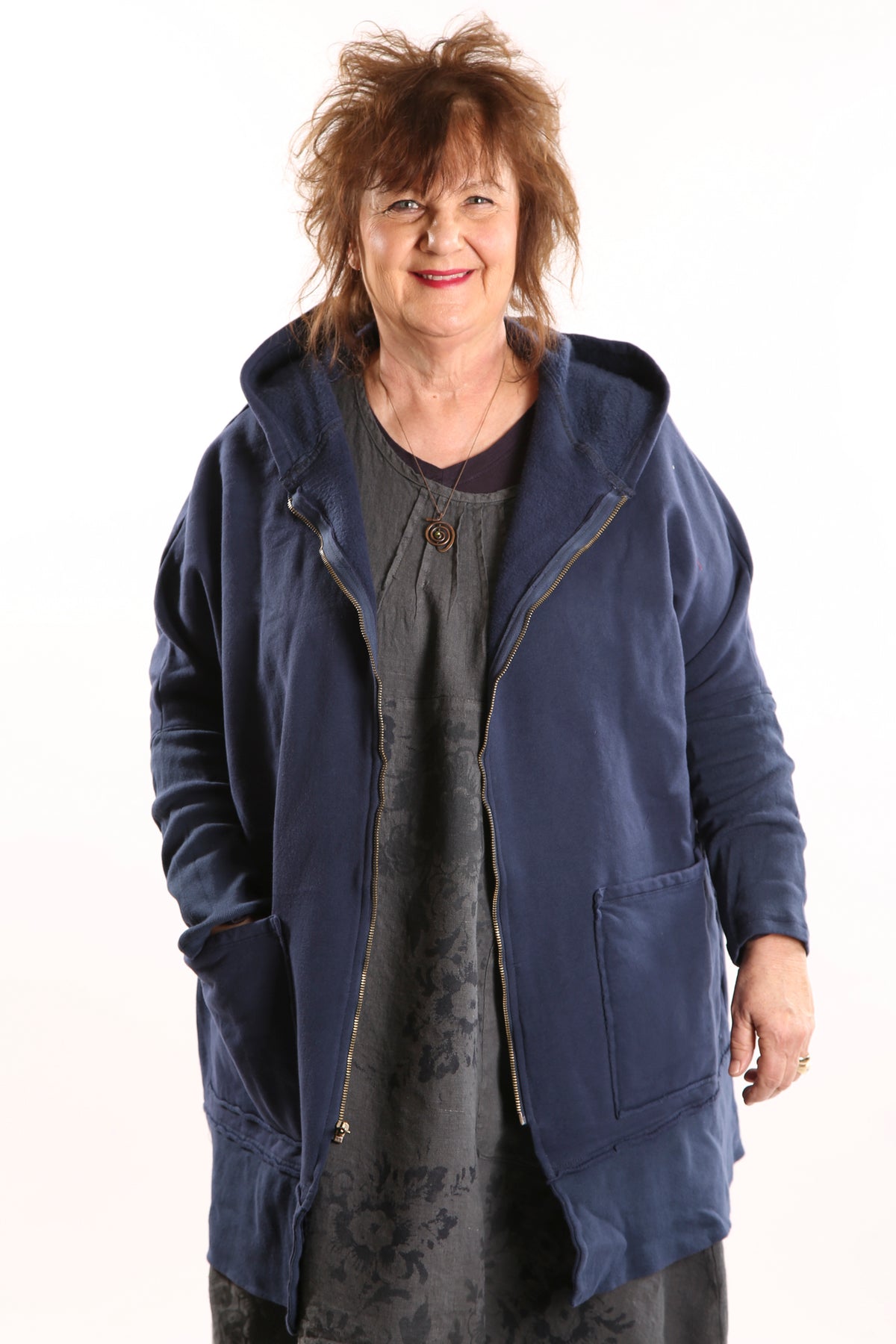 A perfect warm thick organic cotton stretch zip hoodie to layer .