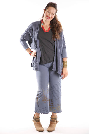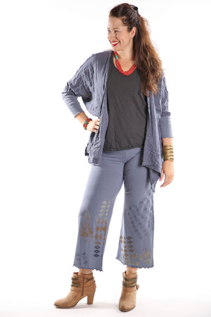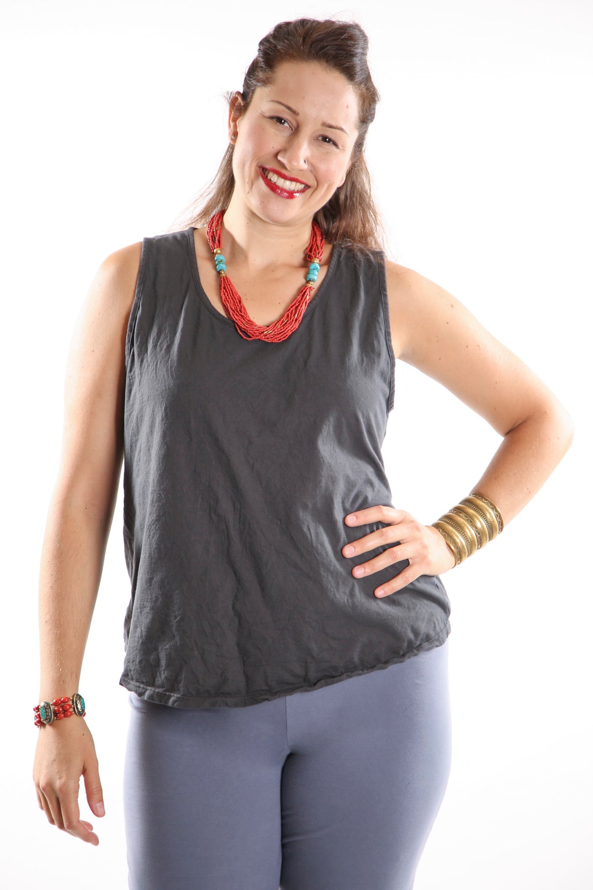 We are asked all year about our organic cotton tanks...This version has a scooped hem front and back. The printed version is graphically stunning in bold silkscreened prints. The unprinted version is a nice soft simple tank to wear as a shell beneath our Crinkle Cardi. These tanks will be your layering go-to all year long.