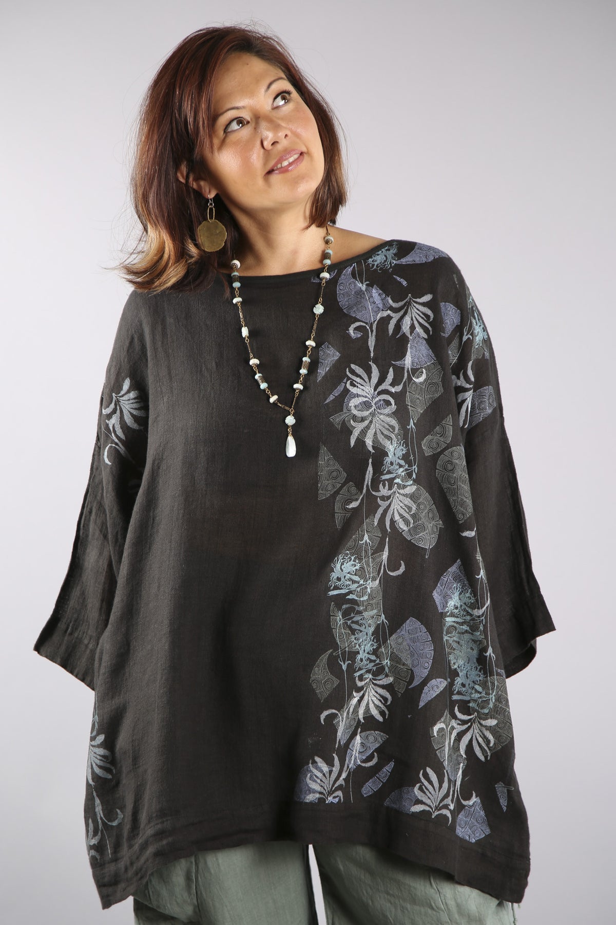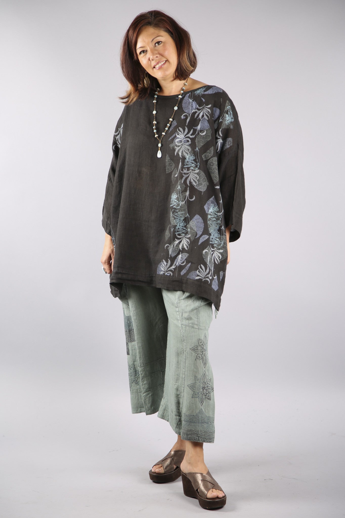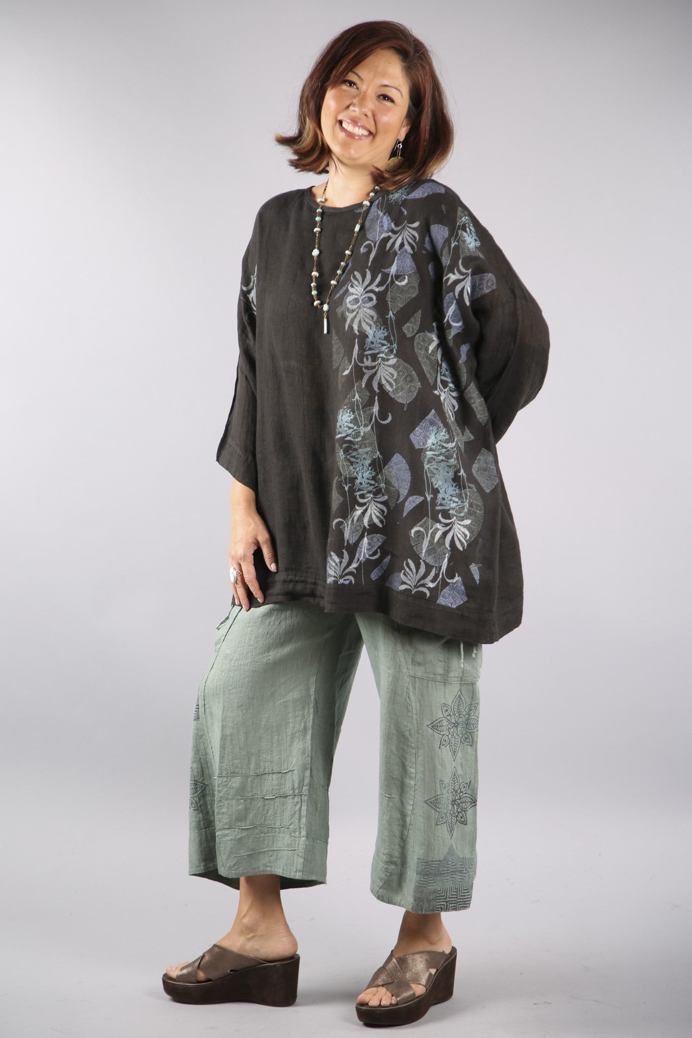 Simply beautiful, this airy top drapes elegantly and flatters every figure. Cool and comfortable, this linen top will be your favorite go-to this summer. Our artists created deliciously fun prints for eclectic style.
