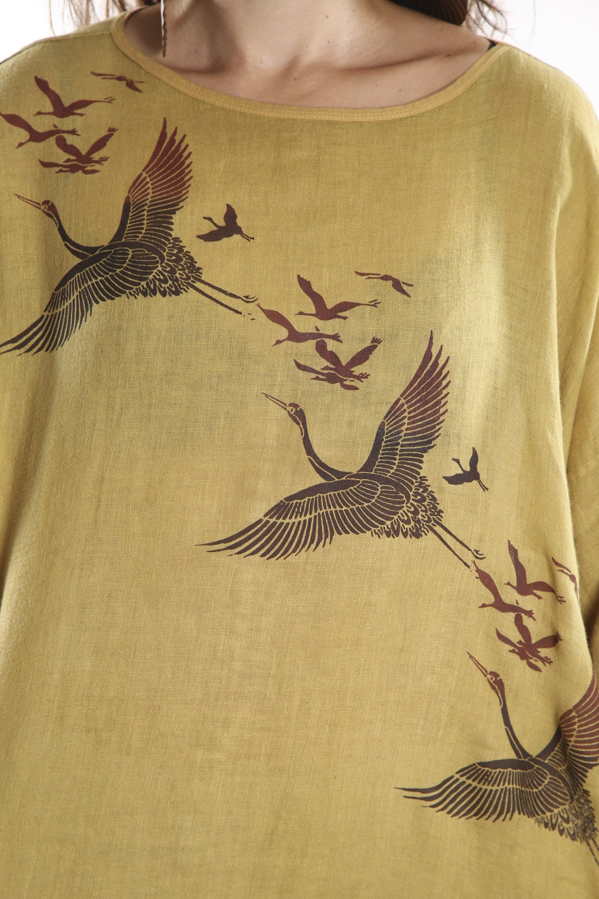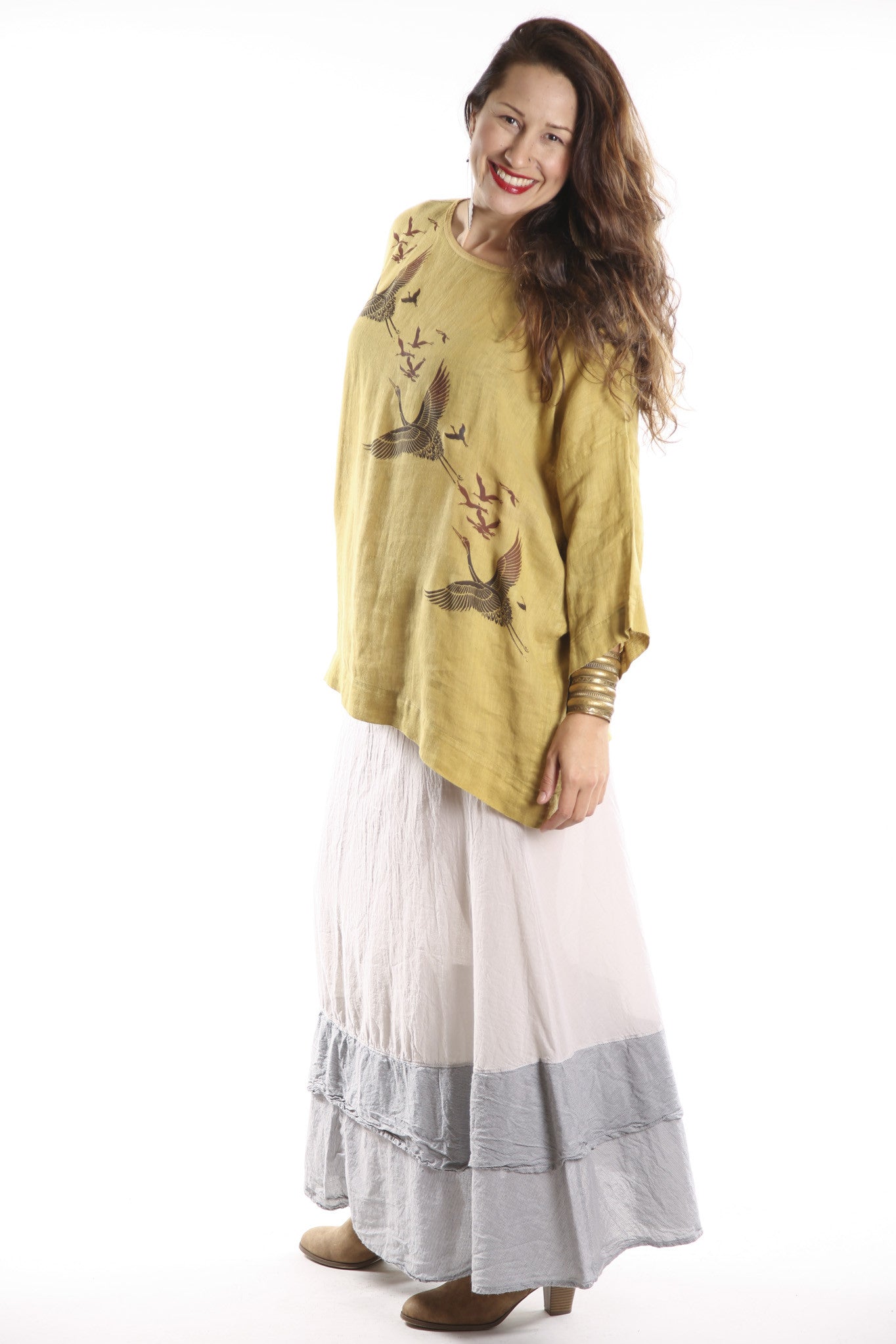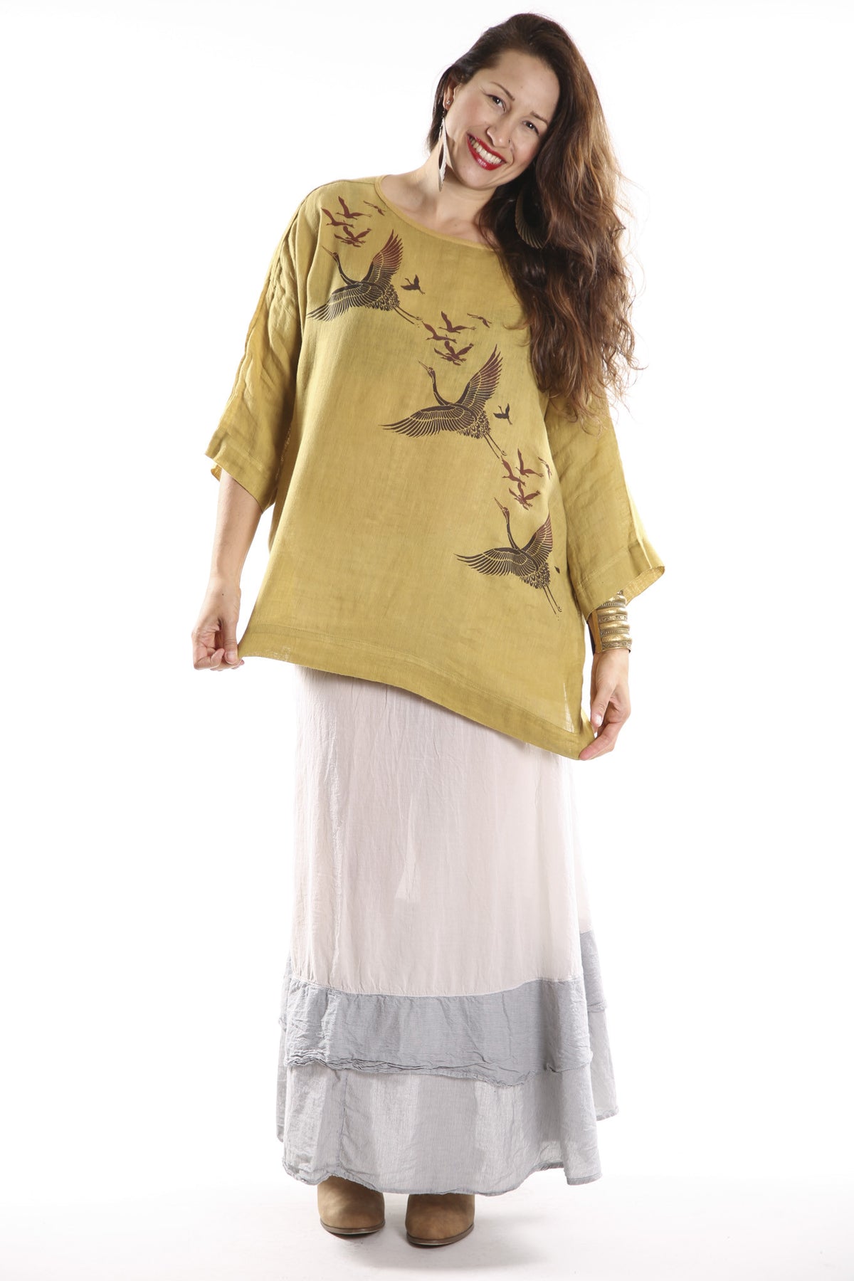 Simply beautiful, this airy top drapes elegantly and flatters every figure. Cool and comfortable, this linen top will be your favorite go-to this summer. Our artists created deliciously fun prints for eclectic style.