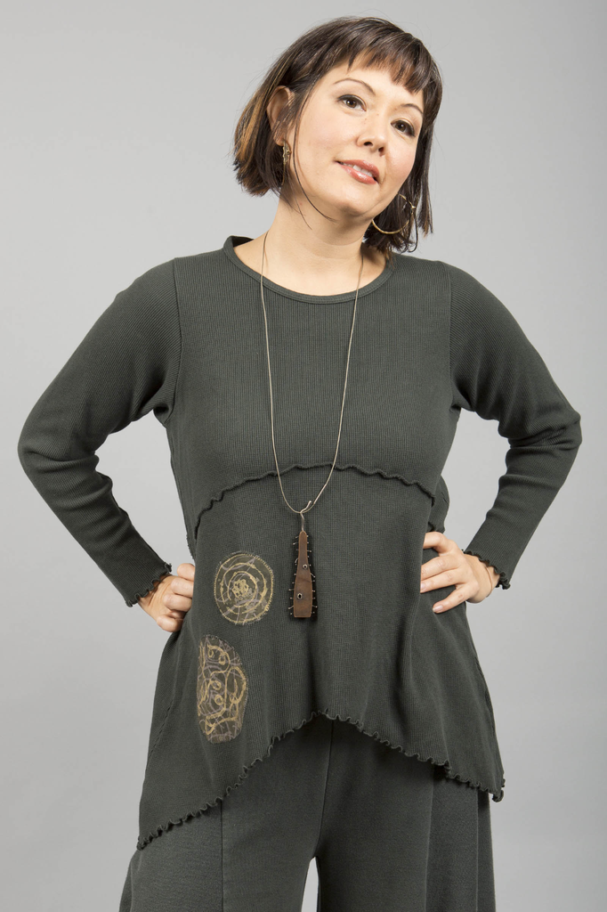 A two tiered a-line thermal tunic to take you through the winter! Lettuced cuffs and hem keep it lightweight. Try layering one of our layer tops underneath...