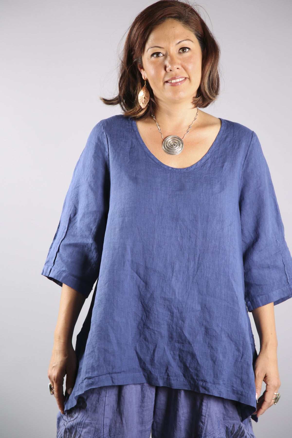A favorite among many, this lightweight linen top has an A-line shape that is flattering on everyone. With a rounded v-neck and 3 pinches detailing each sleeve hem, it's a style you could wear every day of the season. Wear it with the Linen Genealogist Pant or a legging with the Layer Skirt.