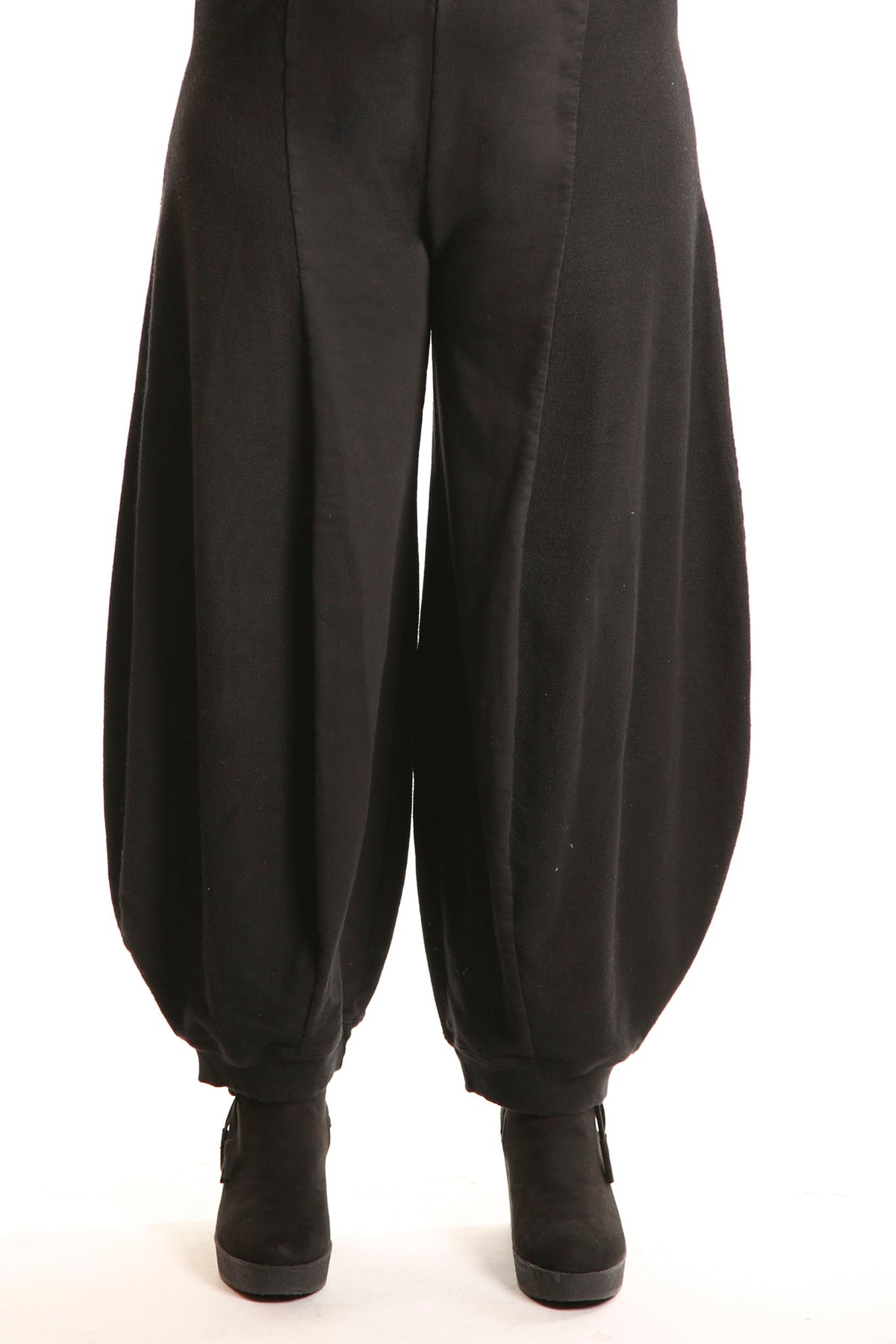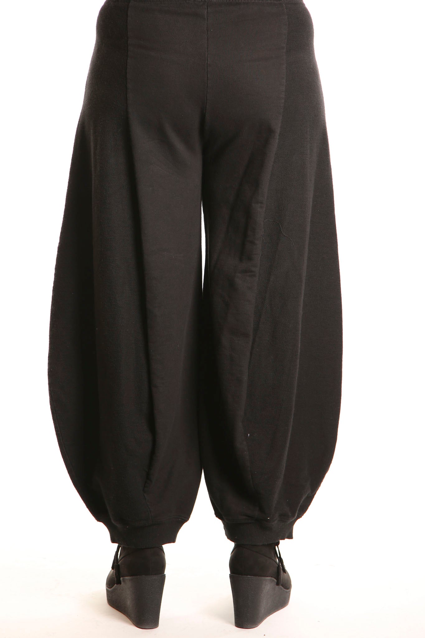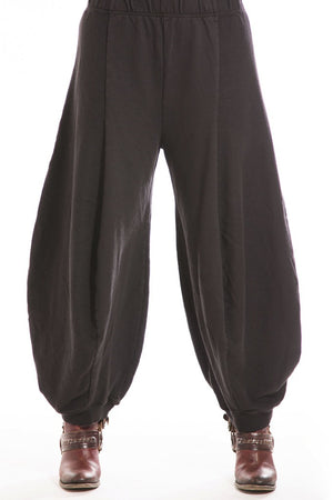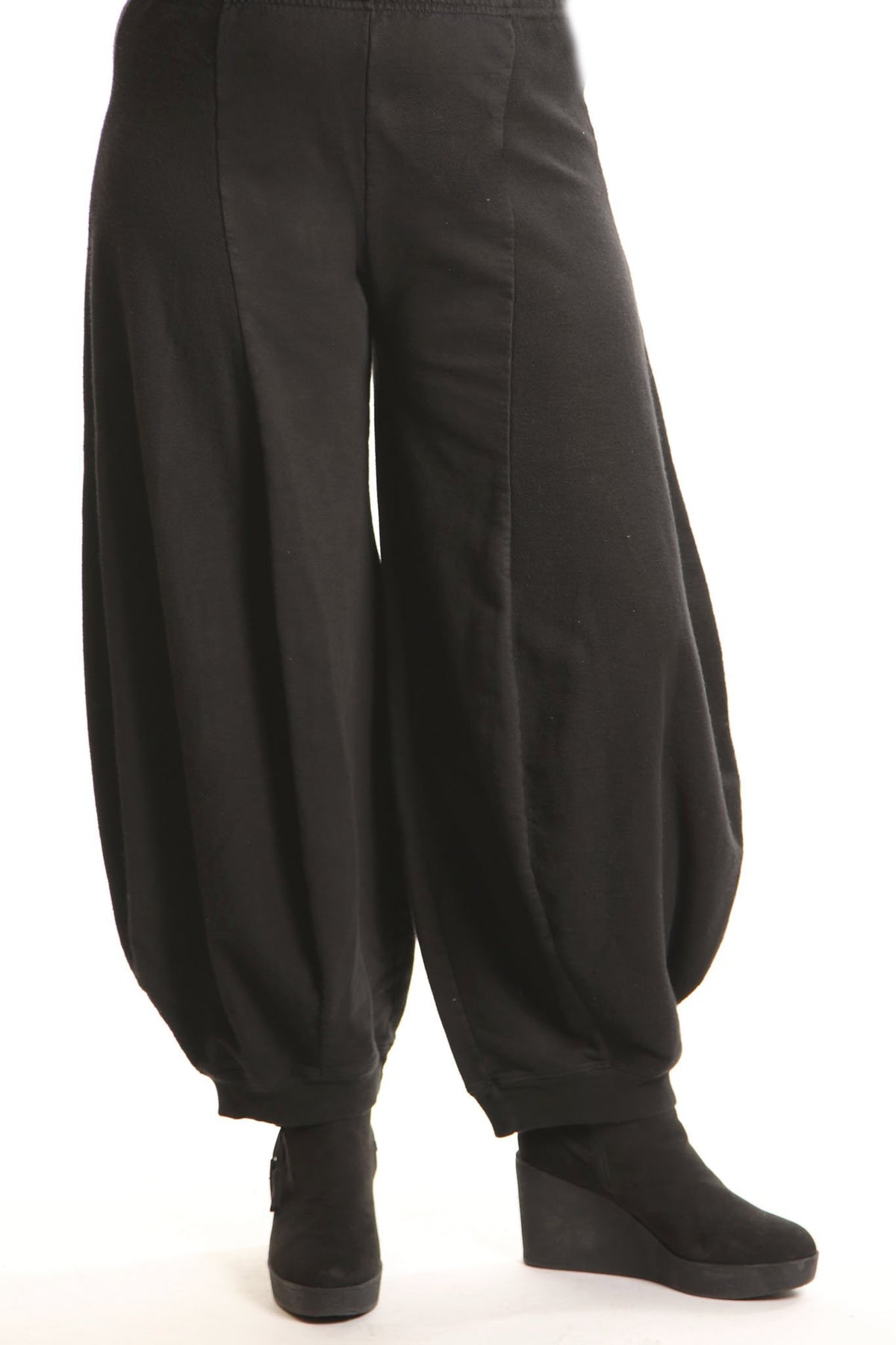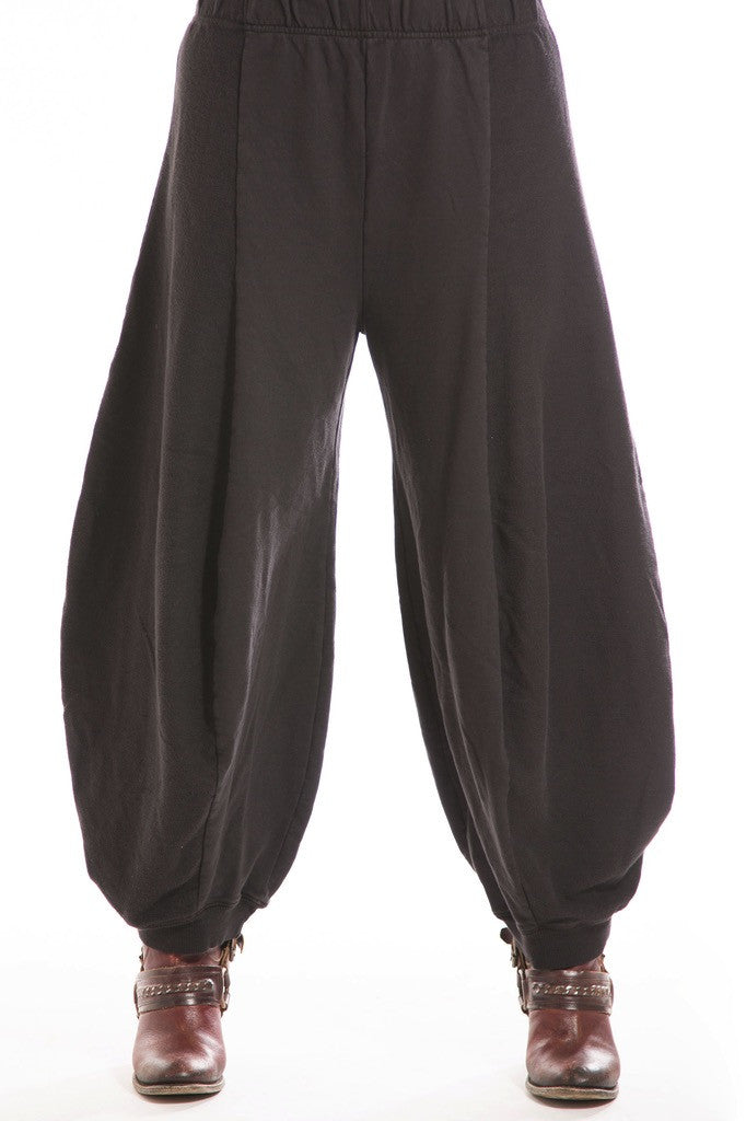 Curved seaming creates an interesting silhouette. 2" waistband, rib cuffs. This thick french terry pant will be an instant favorite! Rolled up these have a completely different look.