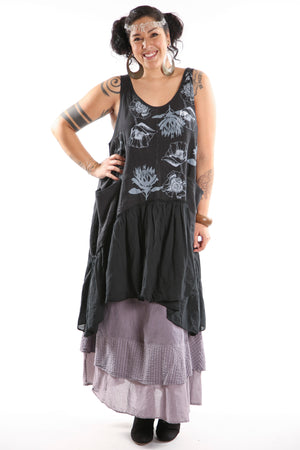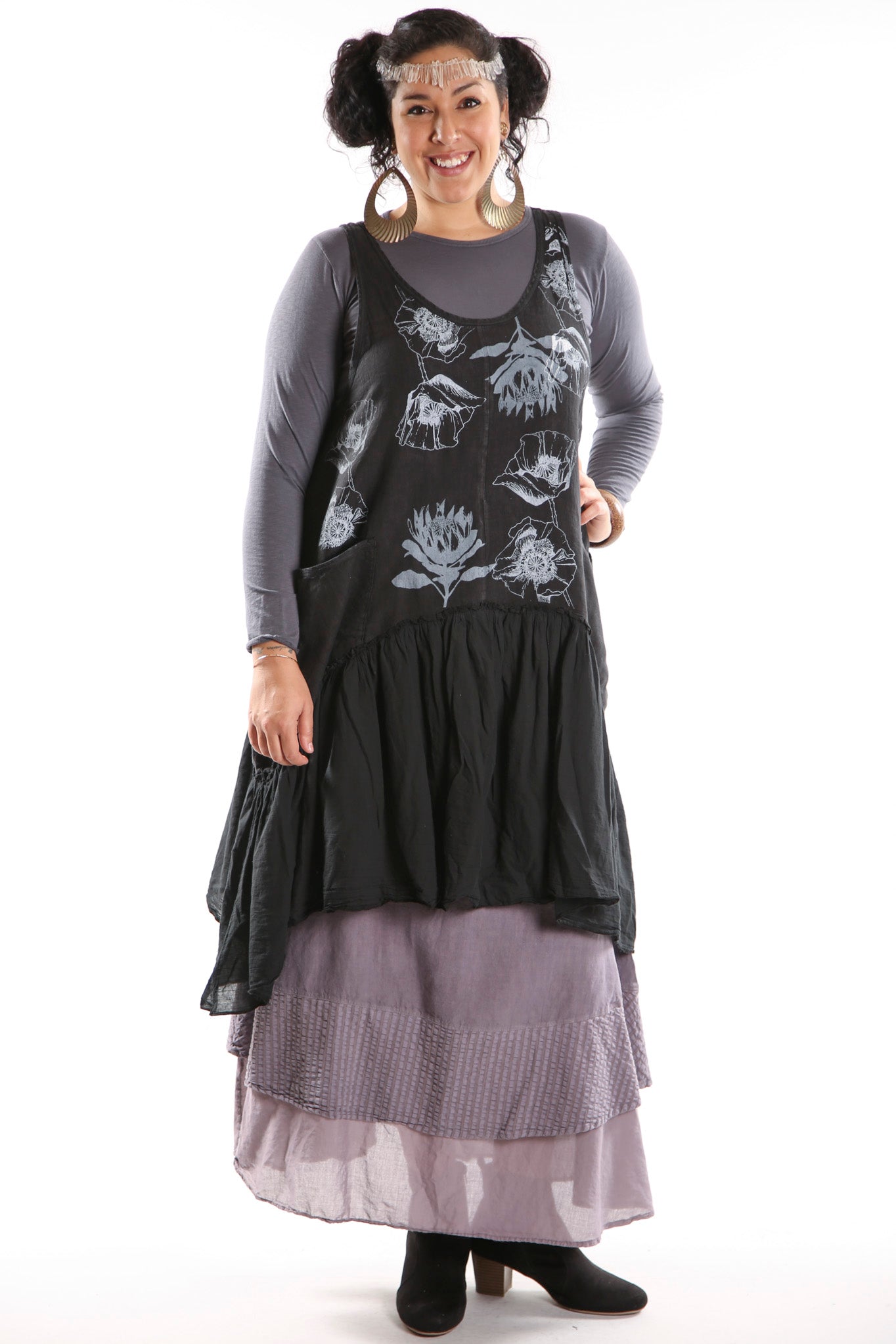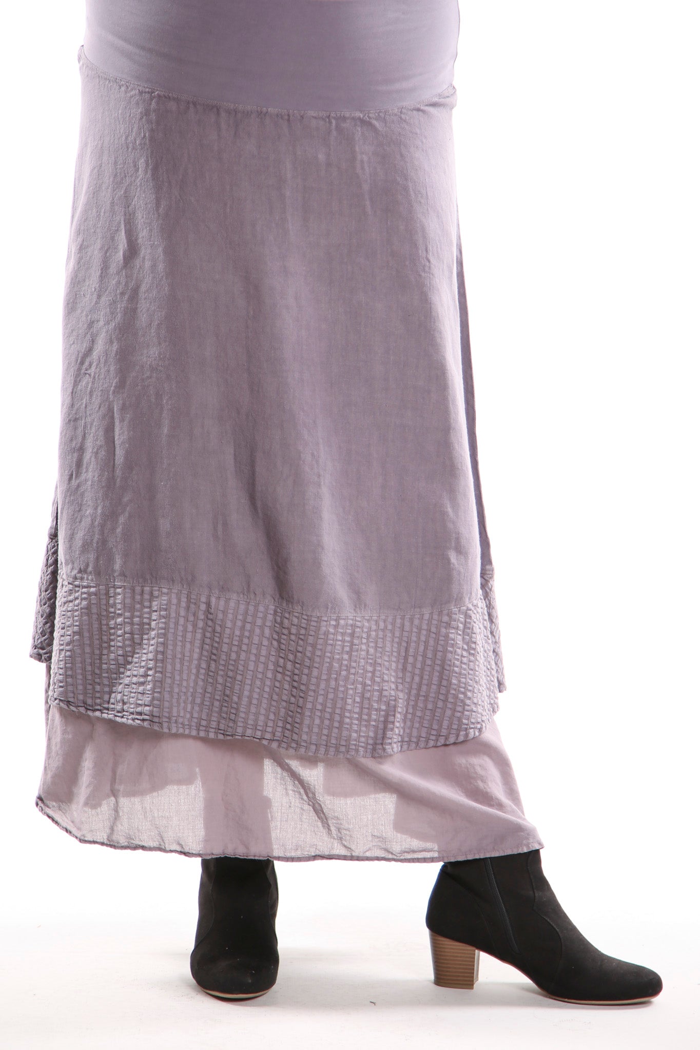 This skirt hardly needs explanation. We love it. You'll love it. Period. But just in case you want to know more . . . It has three tiers of lightweight loveliness, starting with cotton gauze, lace, and ending with a hemp blend. The doubled organic cotton (with a touch of lycra) waistband allows the fit to easily be adjusted on your hips for the most comfort.