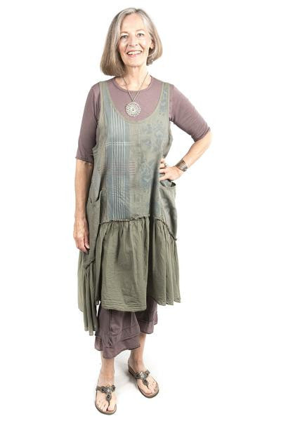 A flirty cotton voile ruffle at the bottom hem, deep pockets and flattering easy fit make this light weight linen sleeveless dress a beautiful choice for summer. Wear it over the Light Weight Tissue Layer Top, or any tee or tank. To create an artfully eclectic lagenlook add a fun legging or pant, such as the Summer Tiered Crop Pant, and a light weight cardi. Colors and prints are inspired by the Scottish sea, earth and sky. A true Blue Fish throwback!