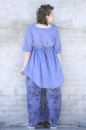 A flattering style made from lightweight cotton lawn that keeps you cool and stylish. The body is shaped through the sides, has a sweet cut out neckline and elbow length sleeves.It's empire waisted, and cut slightly longer in the back with a drawcord to adjust fit.