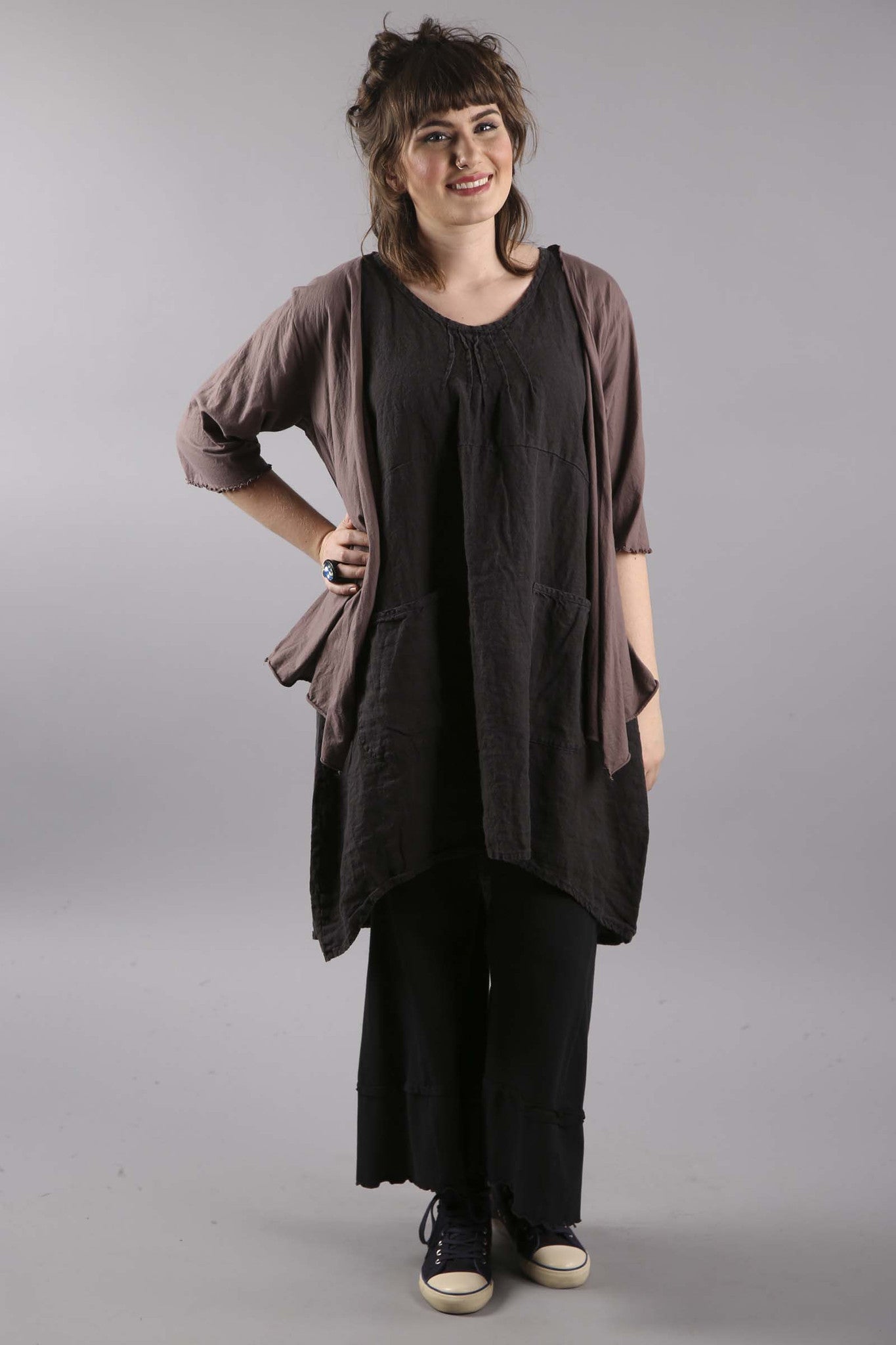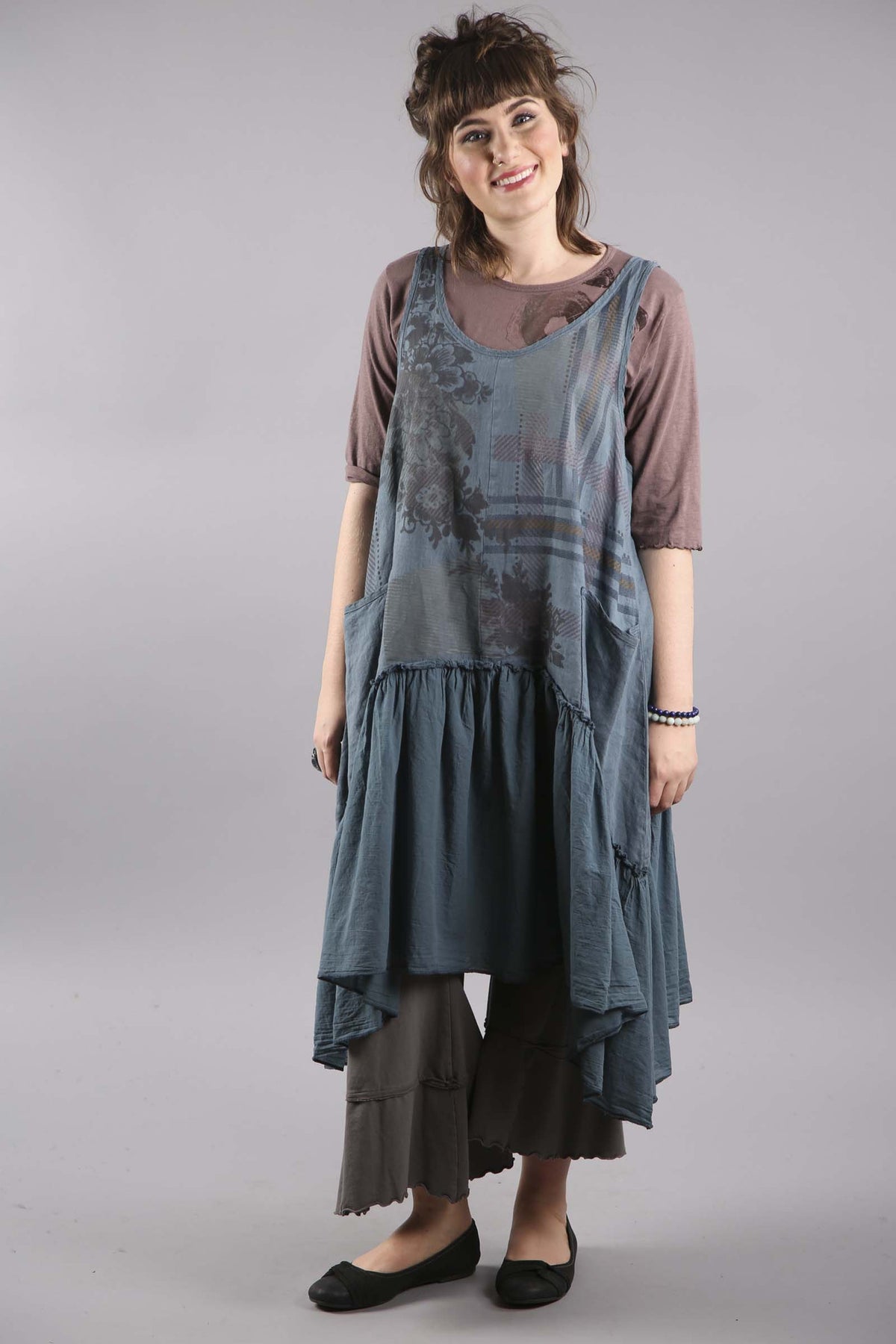 Made of organic cotton with a touch of spandex for stretch and ease, a fun style flare pant that is perfect to wear with our tunics and dresses.