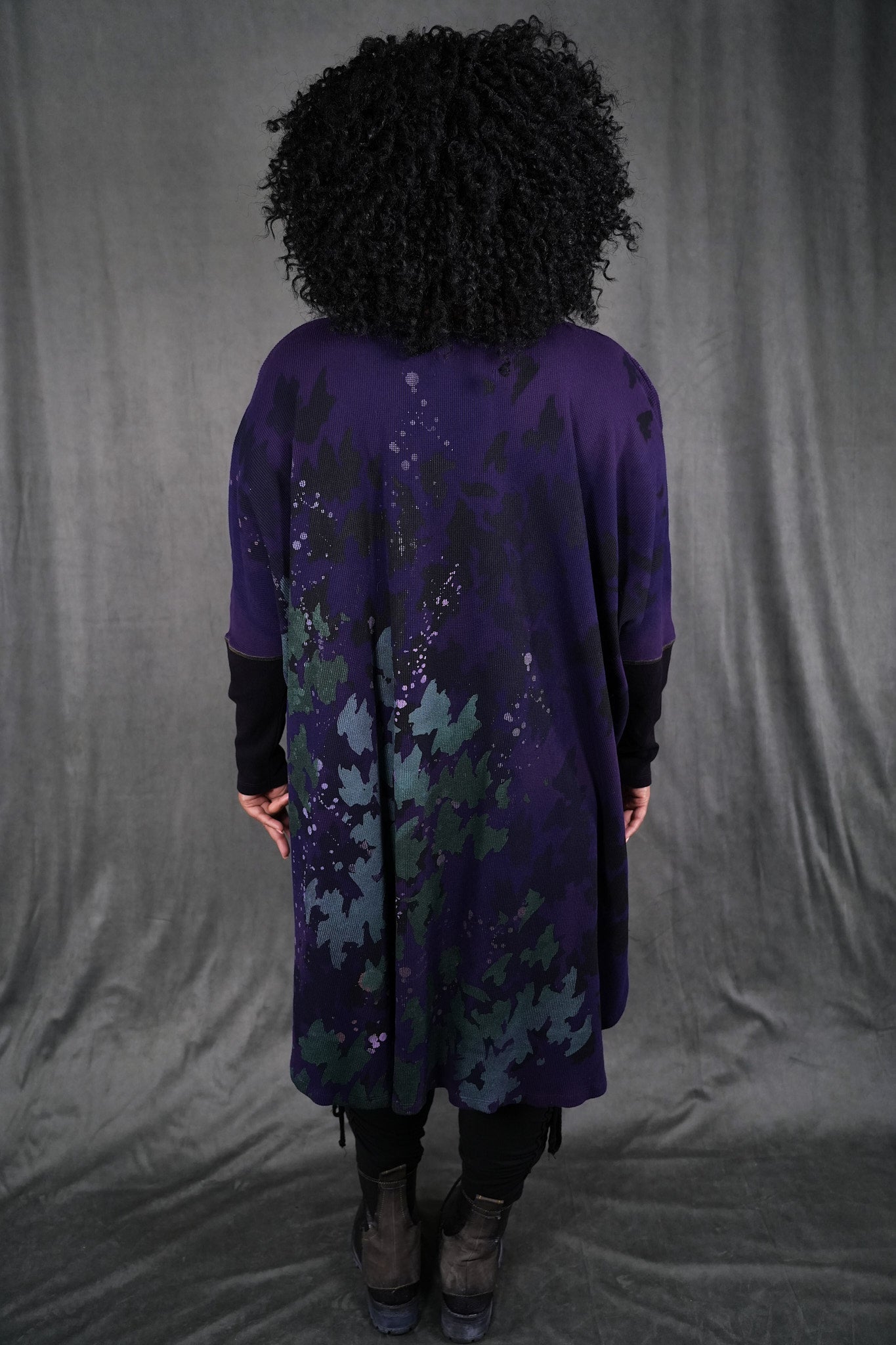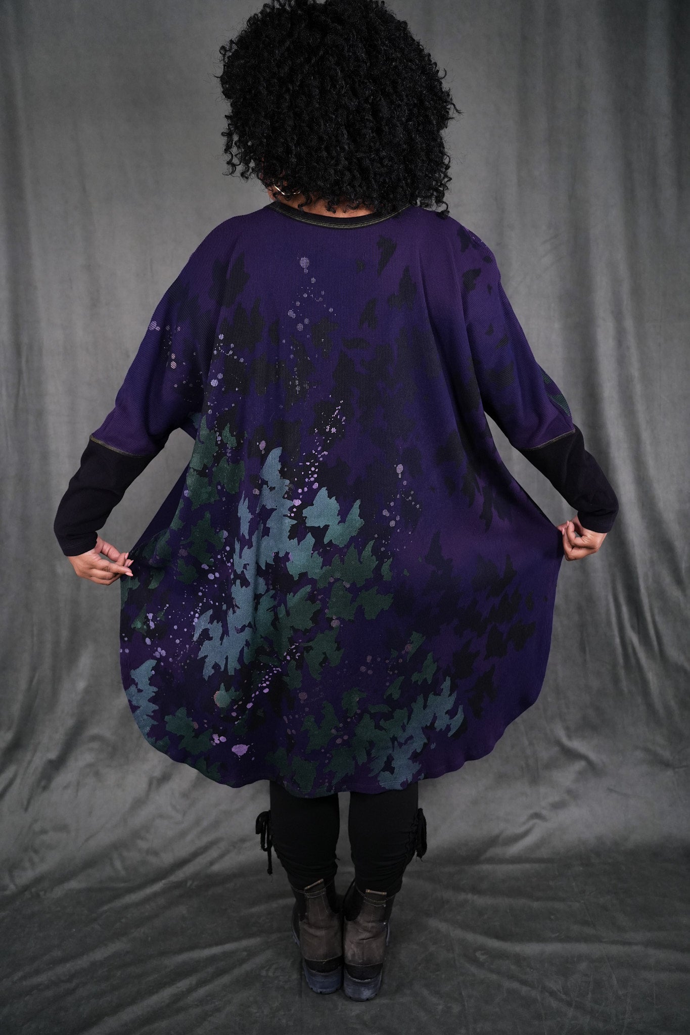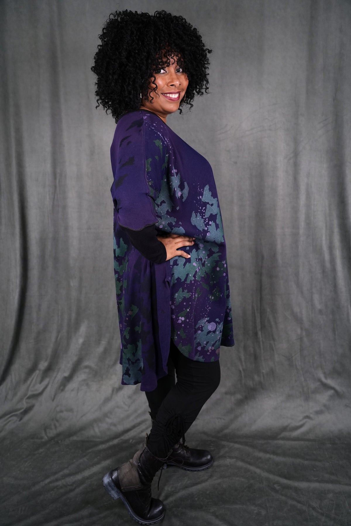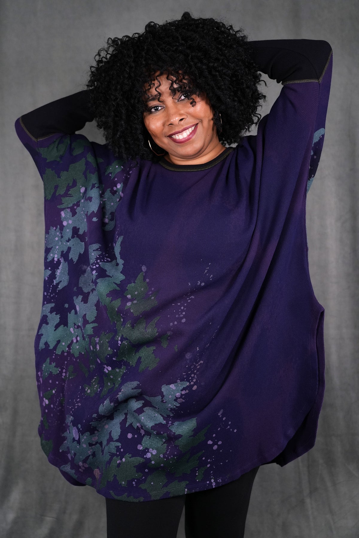 This organic, stylish, one-size, thermal tunic is an instant classic. Color block trimmed at the neck and sleeves with a thick cotton/hemp blend and contrasting thread stitching. Printed with a plethora of layered artful designs from our studio artists... a true work of art! The last of its kind, there will be no more made in its likeness so get it while you can!