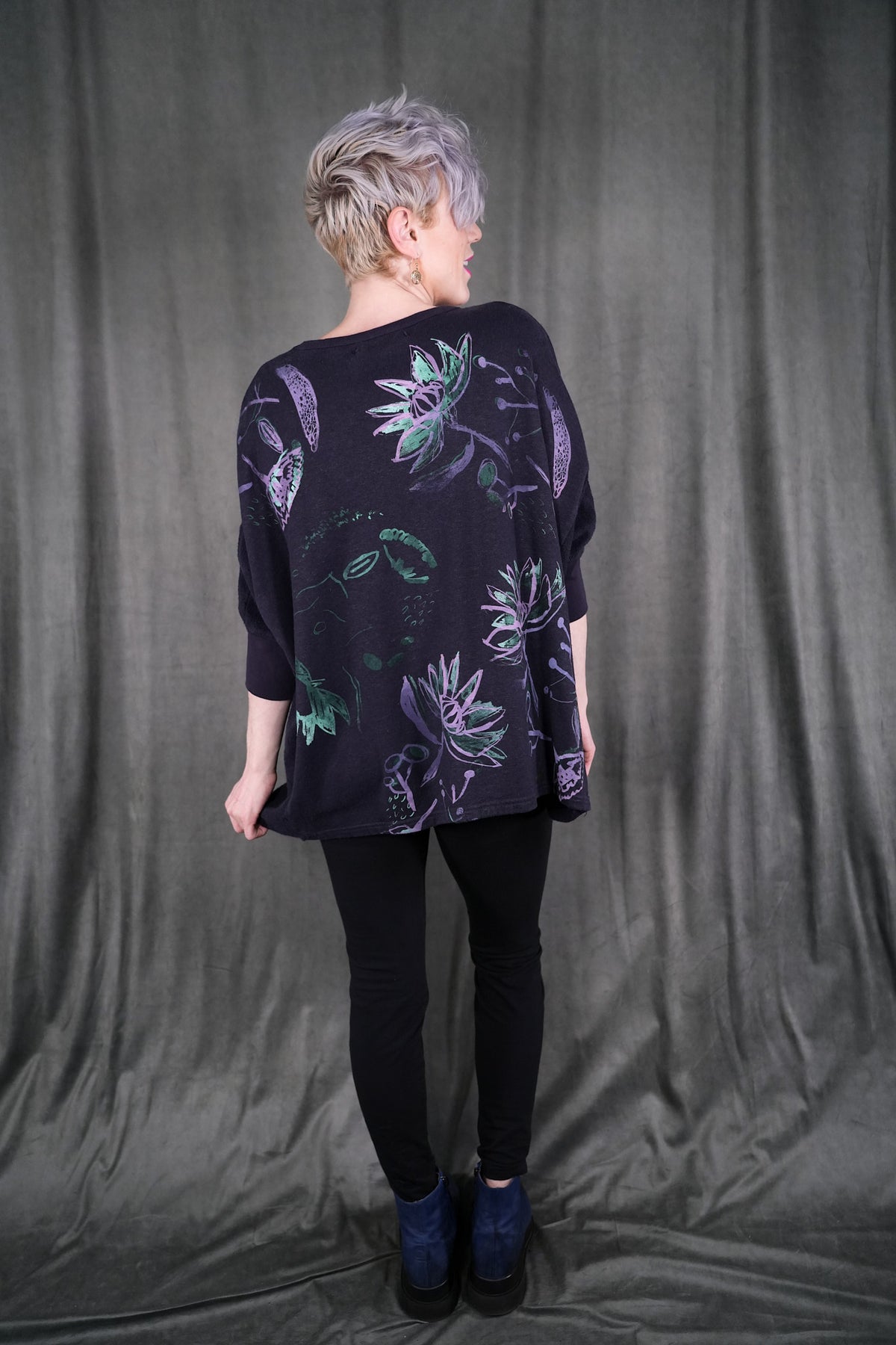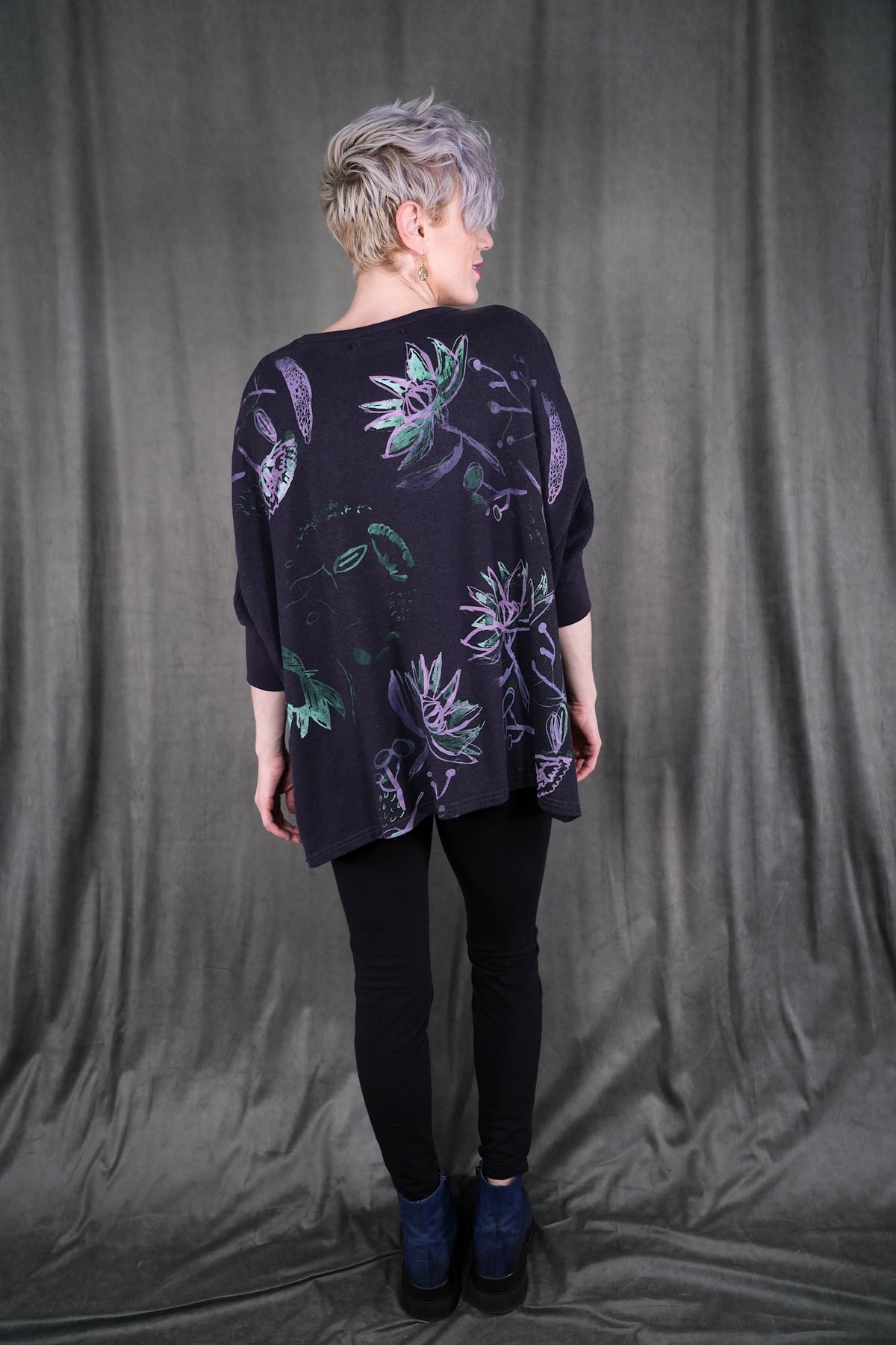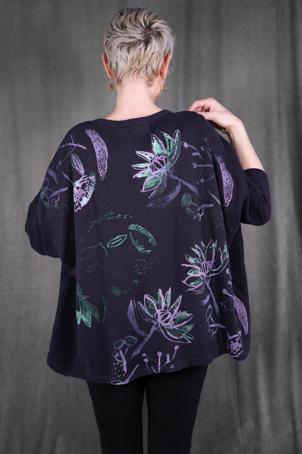 PRINTED FRONT AND BACK -REALLY NICE. This organic hemp/cotton pullover sweatshirt is a new style to love--snuggly soft cozy fabric meets art from our studio to create a piece you'll reach for again & again! Contrasting panels of fabric around the arms & on the sides add visual interest. This is a more tailored version of the favorite square Blue Fish sweatshirt.