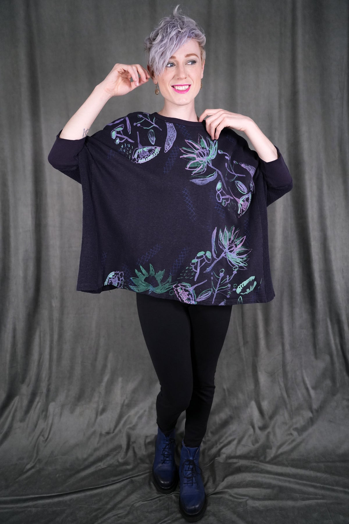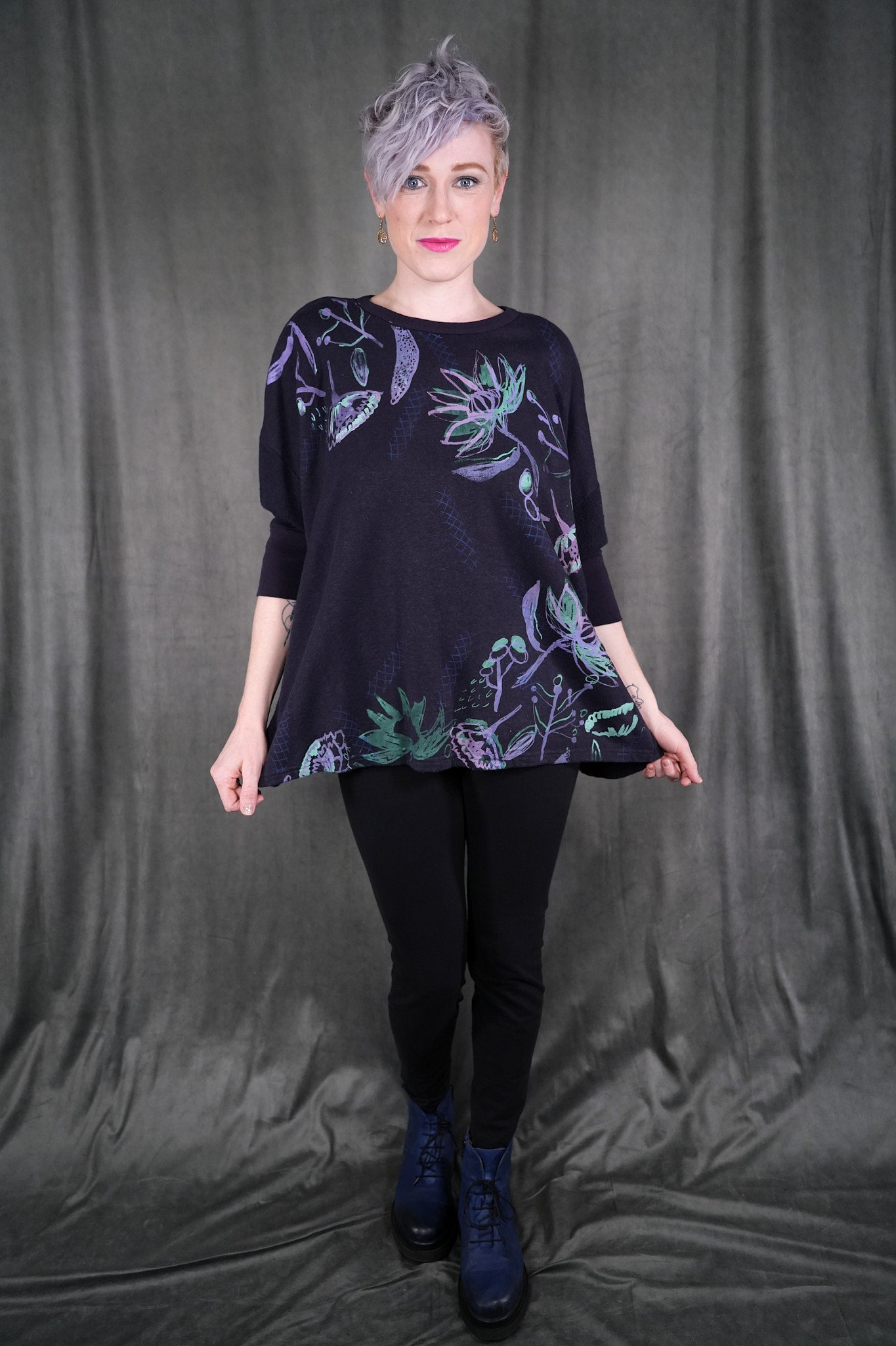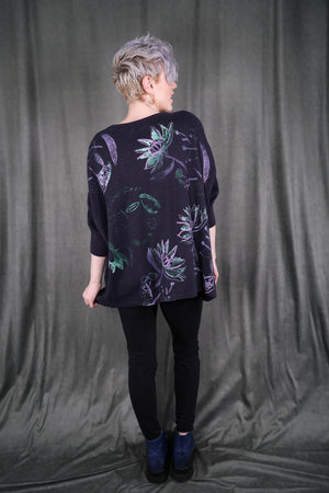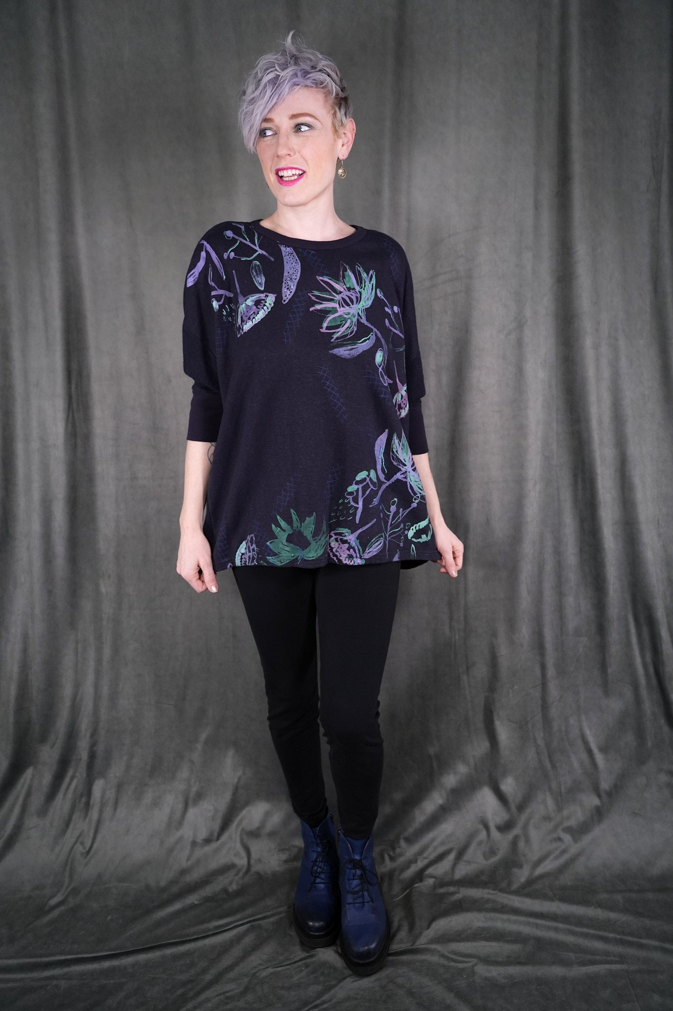 PRINTED FRONT AND BACK -REALLY NICE. This organic hemp/cotton pullover sweatshirt is a new style to love--snuggly soft cozy fabric meets art from our studio to create a piece you'll reach for again & again! Contrasting panels of fabric around the arms & on the sides add visual interest. This is a more tailored version of the favorite square Blue Fish sweatshirt.