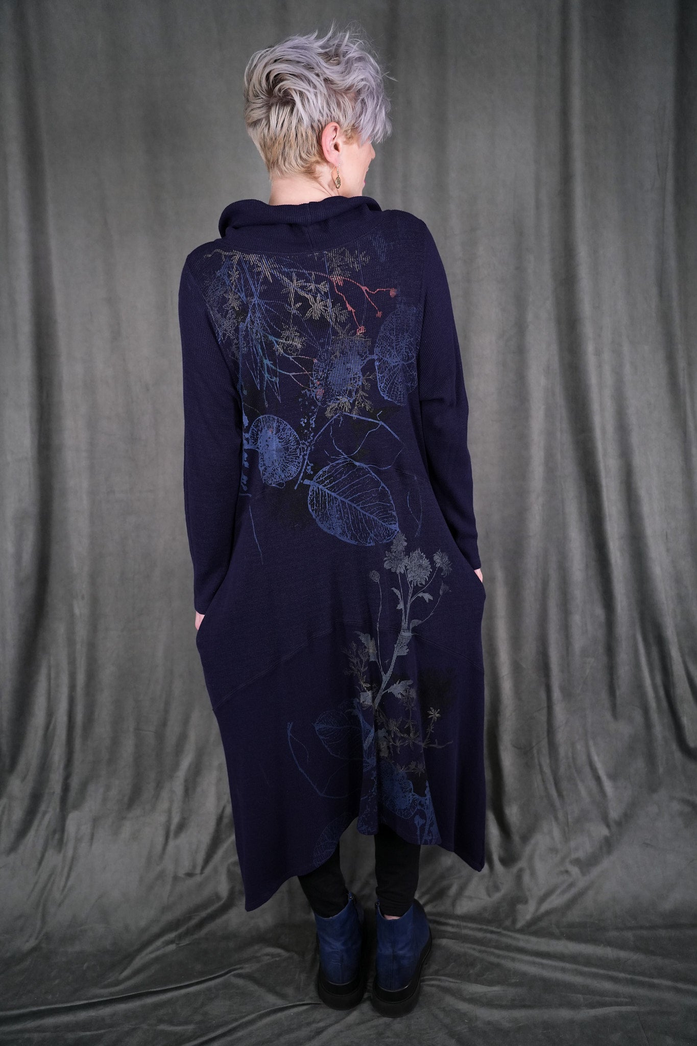 One of a kind printed in botanical designs allover the back. Longer thermal tunic with pockets for your winter wardrobe. Paneled for shaping and the length works well layered over leggings, or wide pants or a long skirt. Pockets, and gorgeous printed layered designs fill the front panel. This dress sports a beautiful bright and colorful floral print. This is a beautiful last ones dress that may never be seen again! Don't let this beautiful dress slip away!