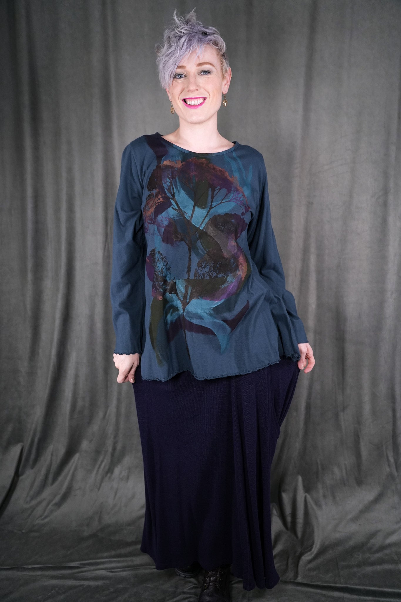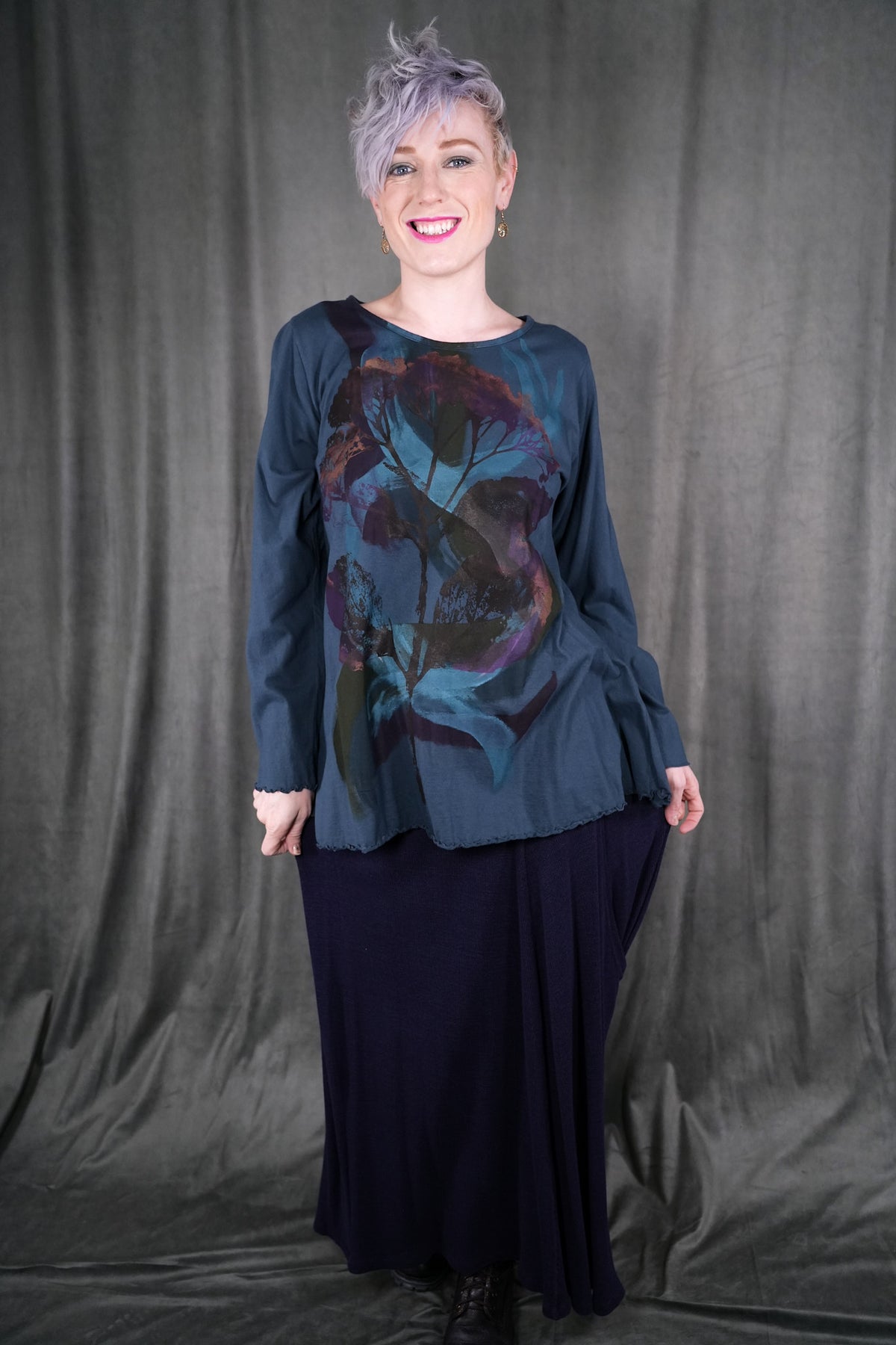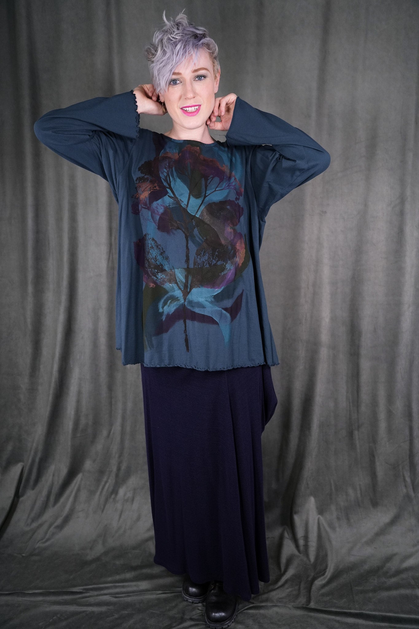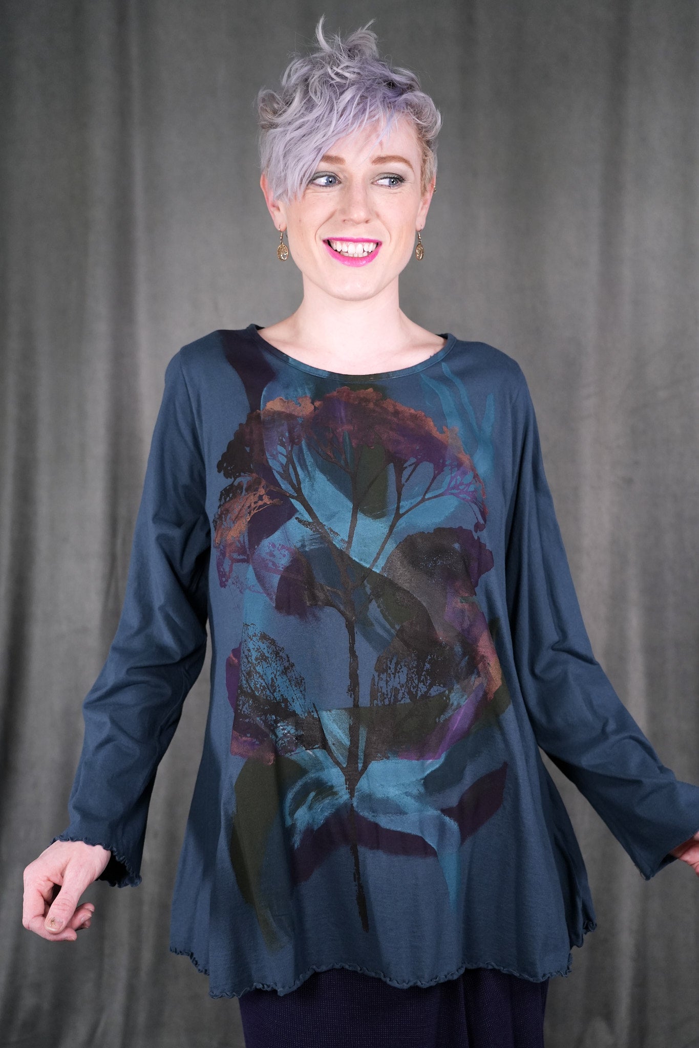 Painterly lovely one of a kind- Our classic Blue Fish tee, now with long sleeves for the cooler weather--in our perfect, season-less weight organic cotton jersey. Size 1.