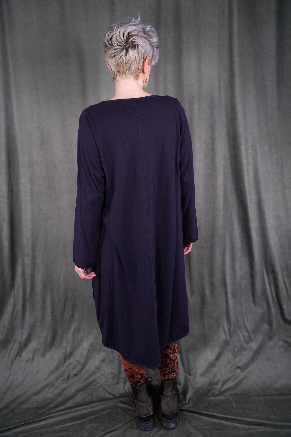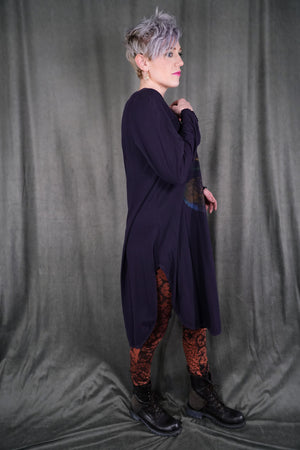 A new twist on our beloved longer tunic styles. This tunic has unique hem that curves upwards, leaving an elegant open slit on each side. This feature makes the fabric flow beautifully with movement.