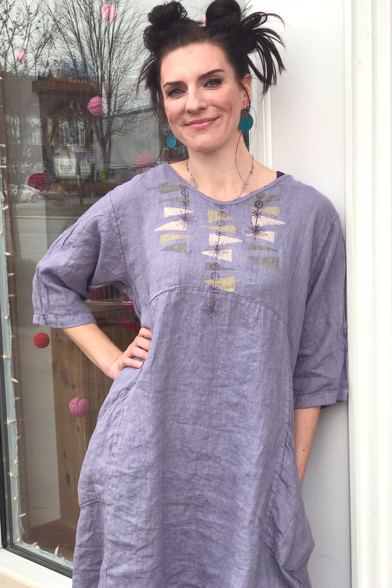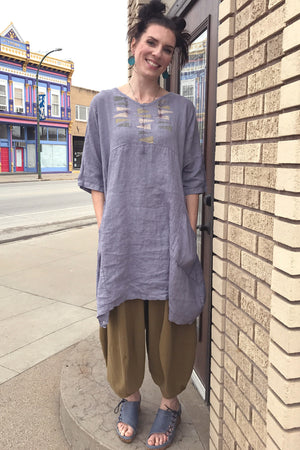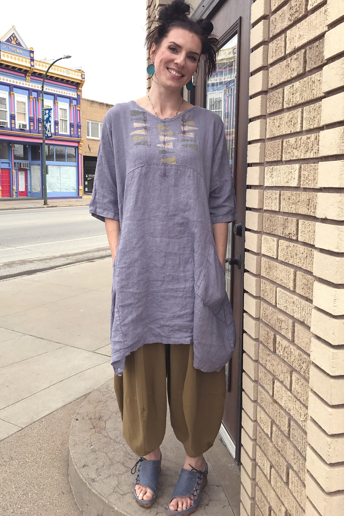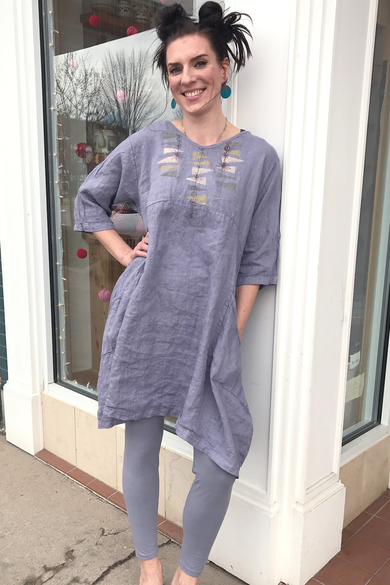 Classic Blue Fish, the Zen tunic in linen offers elegant lines and a comfortable fit for layering with a pant or skirt, or wear it as a simple spring-summer dress. The quality of this lighter linen drapes beautifully with a generosity of fabric and styling. You can dress it up, or dress it down. And of course, the pockets are just right - oh, how we love them!